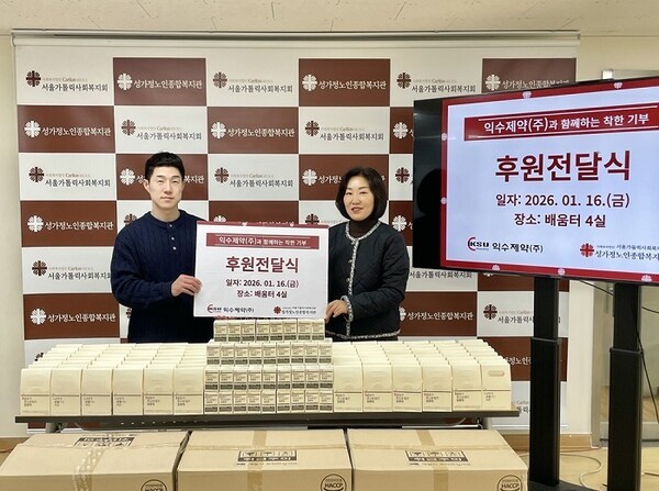 익수제약은 지역사회 어르신들의 건강 증진을 위해 성가정노인종합복지관에 침향정 약 470통을 기부했다고 밝혔다.